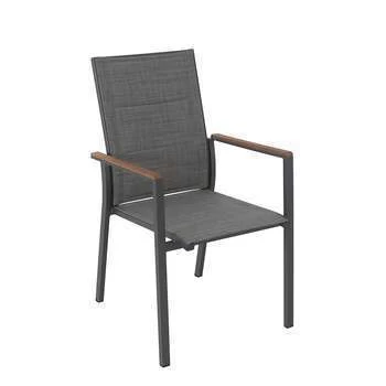 Fauteuil empilable OPERA Structure en aluminium avec accoudoirs en teck Toile matelassée Coloris gris mat…