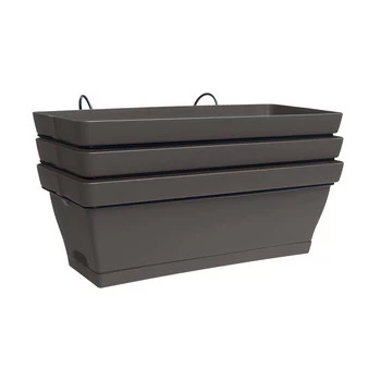 Un coloris taupe tendance pour une touche de gaieté?! Ces 3 jardinières Roméo, d?une contenance de 11L et de 49 cm de long, accueilleront vos plantes d?extérieur pour embellir balcons et escaliers….